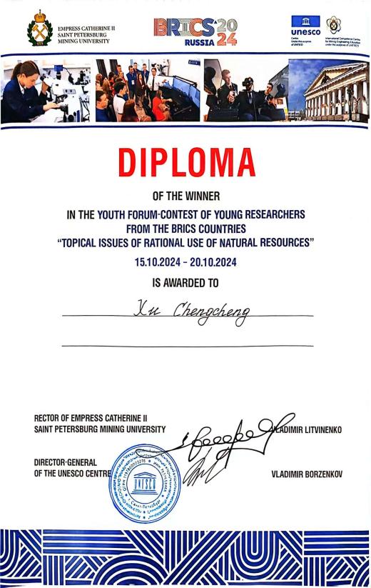 2024年10月15日至20日,由圣彼得堡矿业大学主办,中国矿业大学协办的“矿产资源作为国家主权的基础—人才与创新环境”国际论坛及“自然资源合理利用的热点问题”金砖国家青年学者论坛在俄罗斯圣彼得堡成功召开,学院青年教师李百强博士和许成成博士参会,与国际同行开展学术交流。