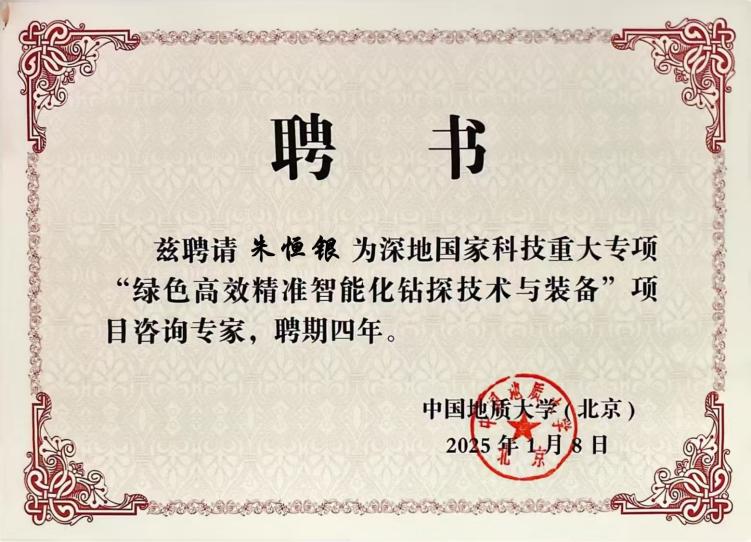 朱恒银教授受聘为深地国家科技重大专项项目咨询专家