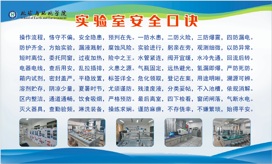 为切实增强师生安全意识,筑牢实验室安全防线,地球与环境学院近期集中开展了实验室安全文化宣传活动。