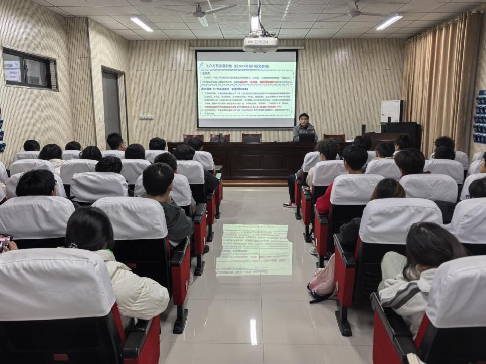 胡时老师结合自身科研与实践经验,系统阐释了“挑战杯”竞赛与专业学习之间的紧密联系,介绍了竞赛的发展历程与核心宗旨,强调其激励青年学生投身实践、提升综合素质的重要作用。他围绕参赛形式、组别设置以及项目如何贯彻新发展理念等内容展开讲解,并以2024年省赛优秀项目为例,深入解析评审标准和备赛要点,指出项目应立足现实需求、尊重市场规律,重视团队协作与能力互补。此外,胡老师还分享了项目培育经验和商业计划书撰写技巧,进一步增强学生参与创新创业的信心。