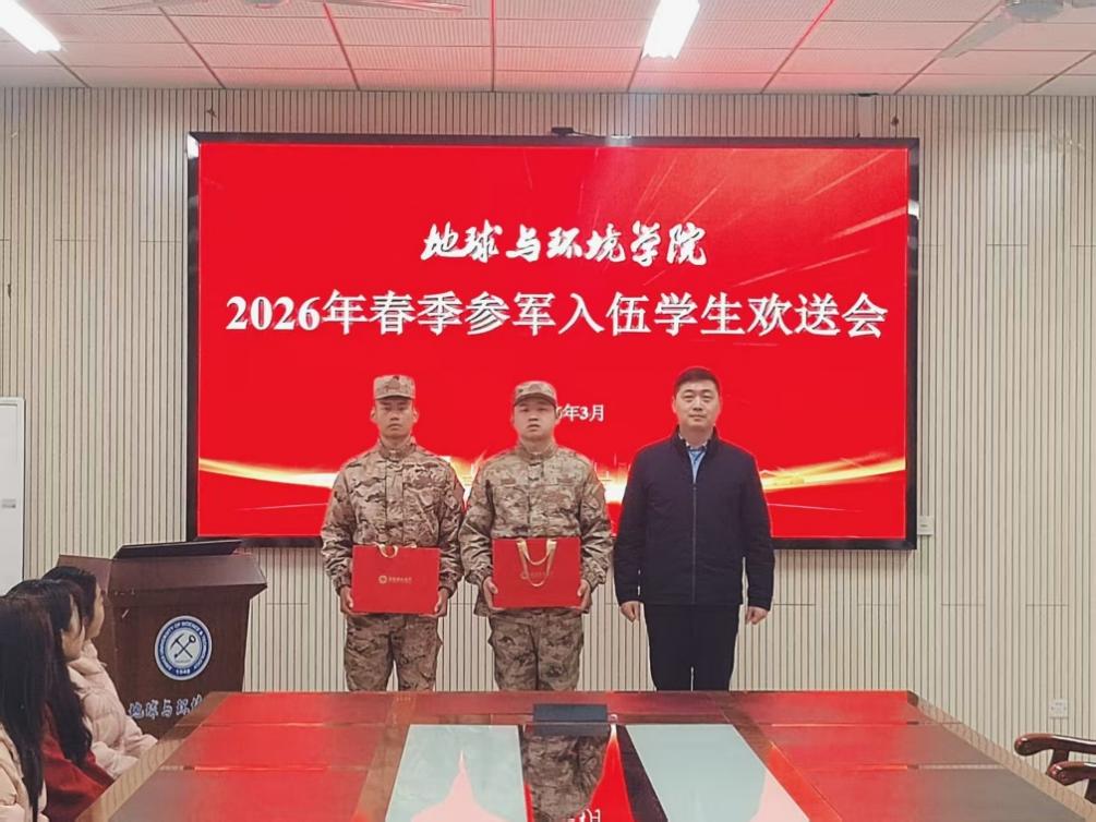 3月17日下午,学院在静远楼B414举行2026年春季参军入伍学生欢送会,欢送毕业班两位优秀学子光荣入伍。学院班子成员、毕业班辅导员、学生代表共同参加此次活动。