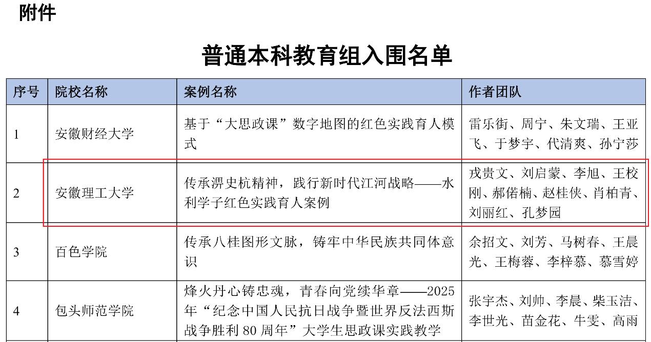 近日,高等教育出版社与新华网联合开展的高校“大思政课”实践教学典型案例征集活动评选结果揭晓,学院戎贵文教授牵头申报的《传承淠史杭精神,践行新时代江河战略——水利学子红色实践育人案例》成功入选。