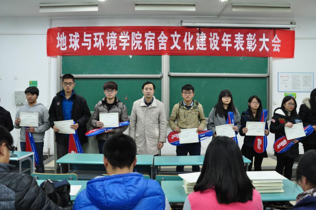 邵飞宣读了《关于表彰2015年地球与环境学院宿舍文化建设年获奖宿舍的决定》。“星级文明”宿舍代表姜红同学和“三走示范”宿舍代表丁修龙同学分别作了交流发言。