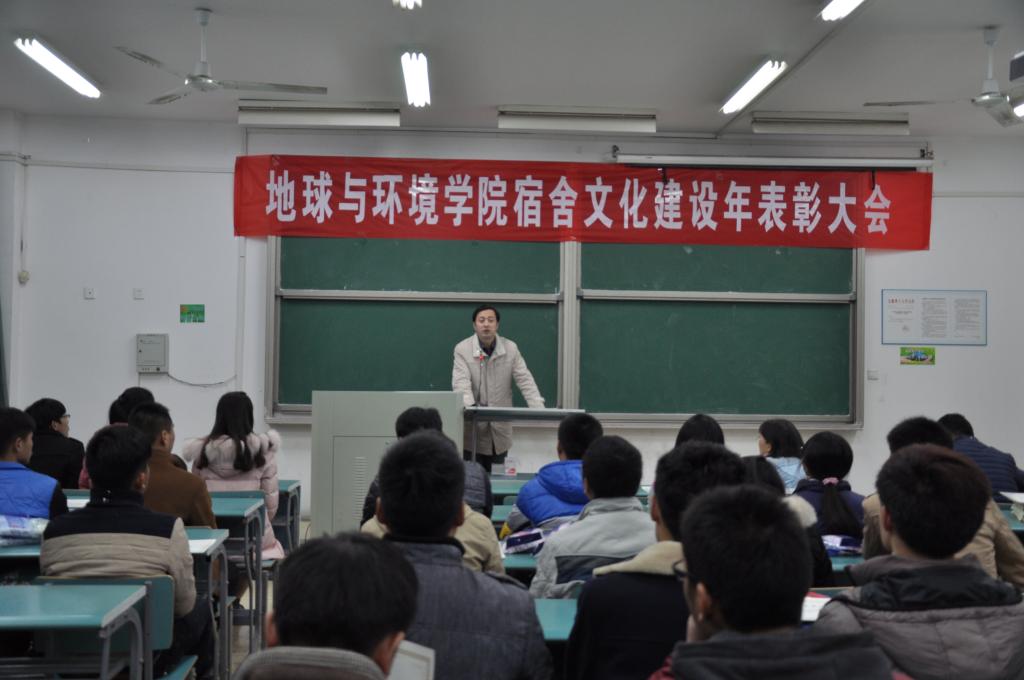 12月11日晚,地球与环境学院在北实204教室召开宿舍文化建设年活动总结表彰大会。学院党委副书记侯辉,各年级辅导员、学生干部及获奖宿舍代表120余人参加表彰大会。学院团委副书记邵飞主持表彰大会。