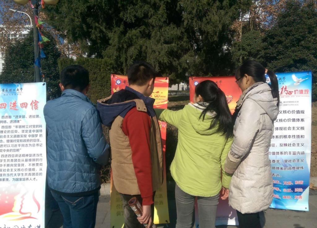 同时,学院团委通过微信、微博等开展社会主义核心价值观“我学习,我践行”活动,宣传践行社会主义核心价值观典型事例,引导青年学生用行动倡导社会主义核心价值观。