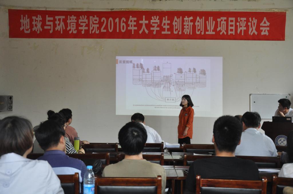 4月22日下午,地球与环境学院在院201会议室召开2016年大学生创新创业训练计划项目立项汇报评议会。学院领导、各专业教师代表出席评审会并担任评委,院长胡友彪主持评审会。