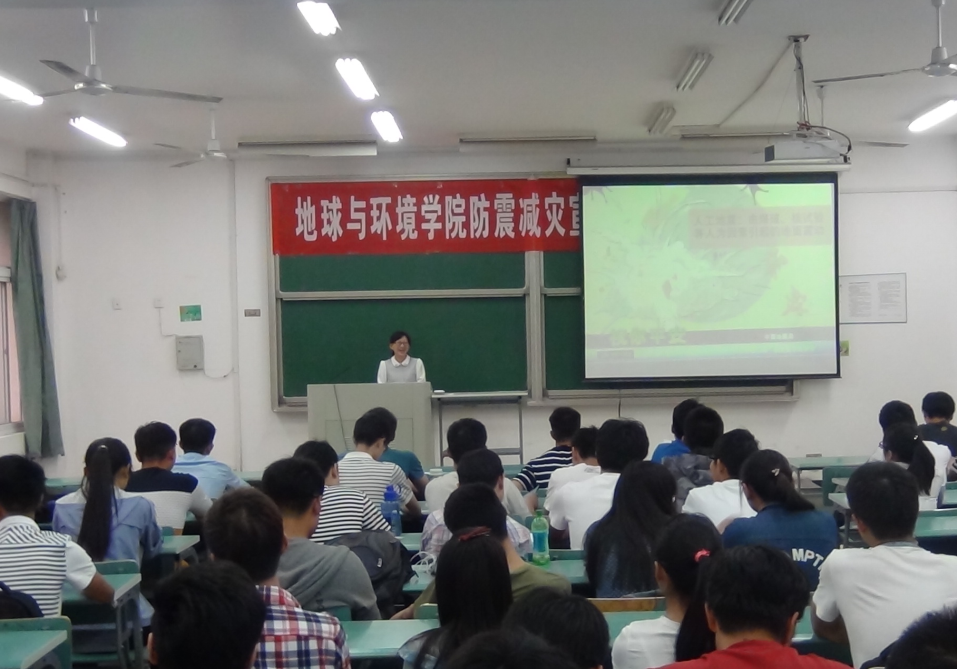 为普及防震减灾知识,增强学生防灾避险意识和能力。5月18日晚,地球与环境学院在北实206教室开展防震减灾宣传教育专题活动。2014、2015级各班级安全委员、寝室长120余人参加教育活动。