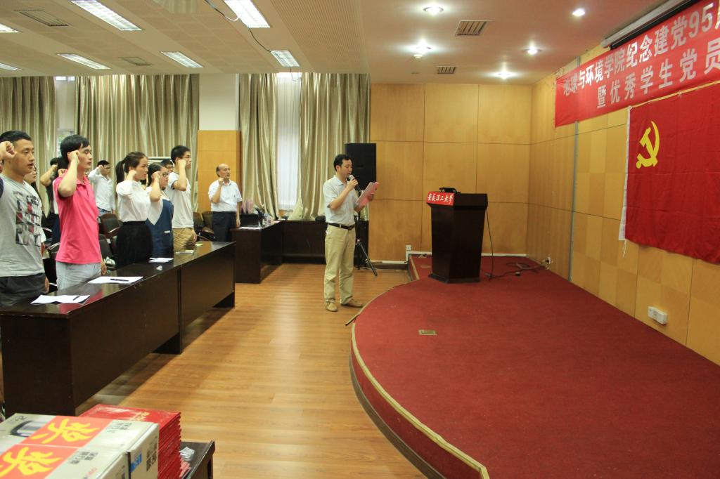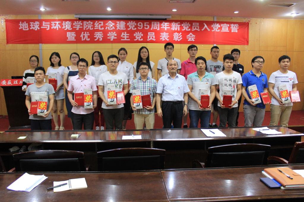 为庆祝中国共产党成立95周年,推动“两学一做”学习教育深入扎实开展,6月16日下午,地球与环境学院2016年度党员宣誓暨优秀学生党员表彰大会在图西会议室举行。