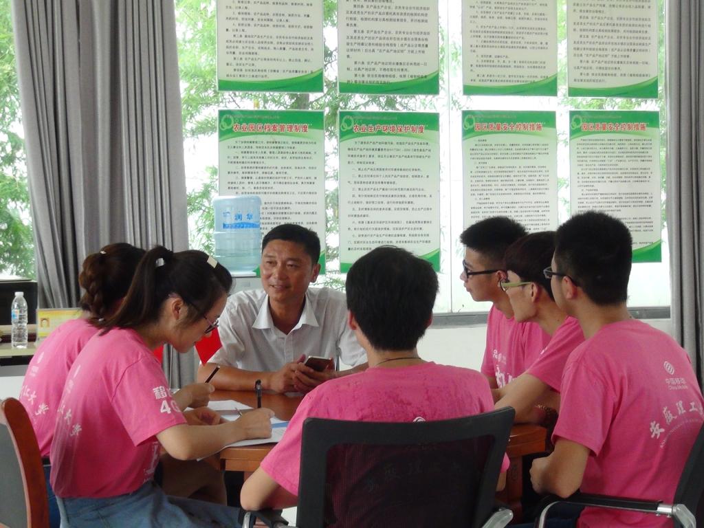 在企业负责人的指引下,同学们深入农业生态园区,参观了园内的6个功能区,聆听了企业负责人对生态园项目的介绍,了解到园区实现了现代化农业生产模式,种养结合,生产资料循环利用,是生态环保的典范。调研期间,实践队员对企业负责人进行了专题采访,详细了解企业的创立发展历程、经营现状、企业文化等,体会民营企业的发展机遇,思考大学生就业创业的前景。