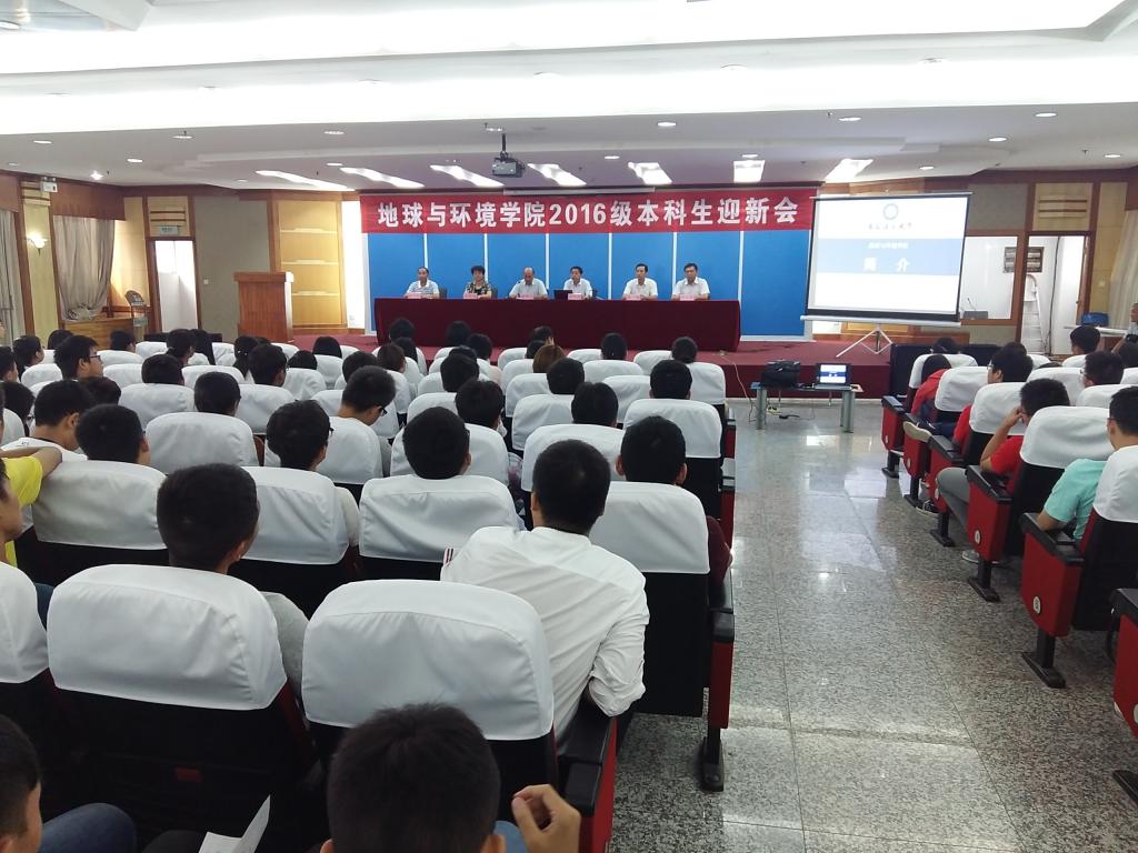 9月23日上午,地球与环境学院在校本部九楼报告厅举办2016级本科生迎新会,学院领导班子全体成员、各年级辅导员以及389名2016级本科新生参加会议。会议由院党委书记盛鹏飞主持。