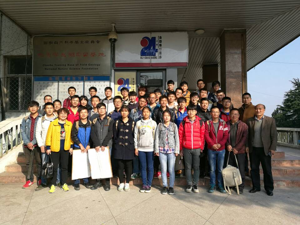 11月10日,地球与环境学院党委书记盛鹏飞,教学副院长宋晓梅,2014级辅导员张贺海一行三人赴巢湖实习基地,看望慰问正在进行野外填图实习的2014级地质工程专业师生。