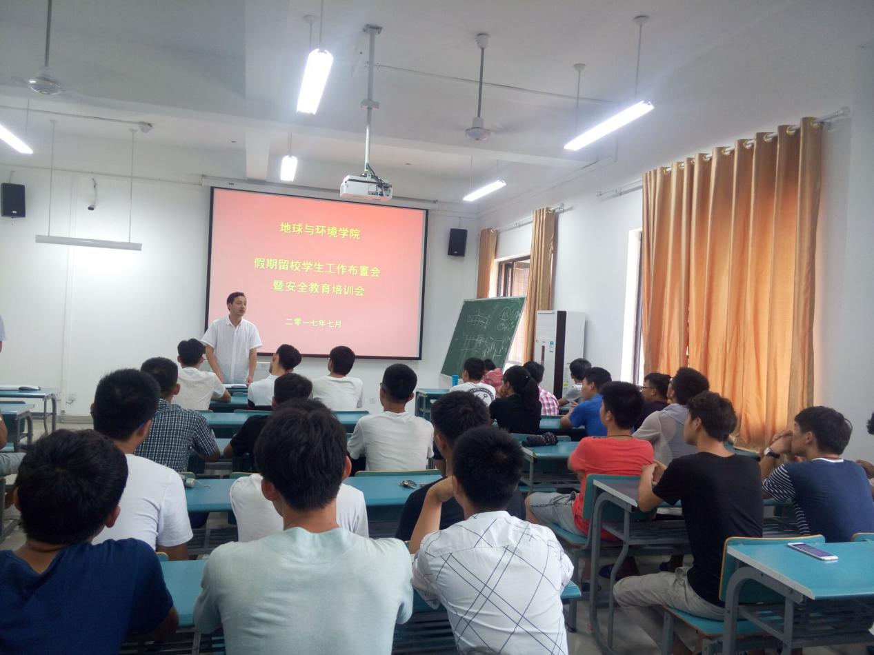 7月7日下午,地球与环境学院在静远楼202室召开暑期留校学生安全教育管理工作会议。学院党委副书记侯辉,各年级辅导员和135名留校学生参加了会议。