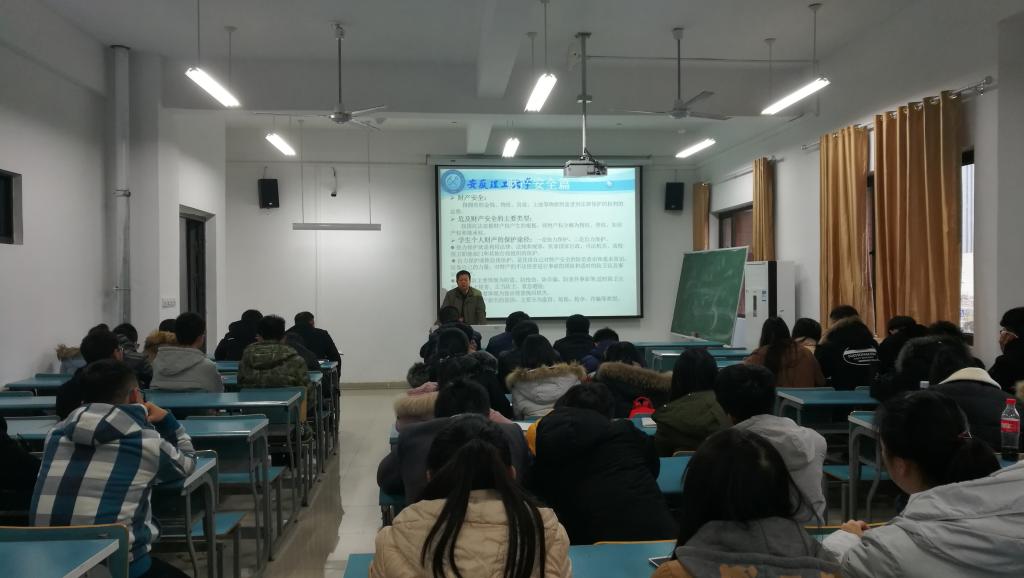 12月28日下午,地球与环境学院邀请校保卫处副处长刘训强在静远楼202教室举办校园安全教育讲座。学院全体实验员,辅导员与学生骨干80余人聆听了讲座。