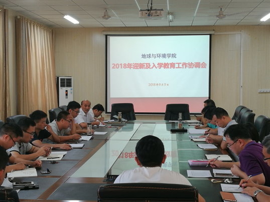 9月3日下午,地球与环境学院在静远楼B414会议室召开2018年迎新及入学教育工作协调会。学院党政领导、各系主任、2018级班主任、两办人员和学生会负责人参加了会议。