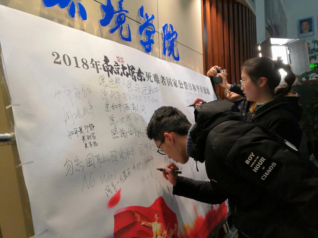 在第五个国家公祭日到来之际,12月12日晚,地球与环境学院在静远楼广场举行“国家公祭日”纪念活动。