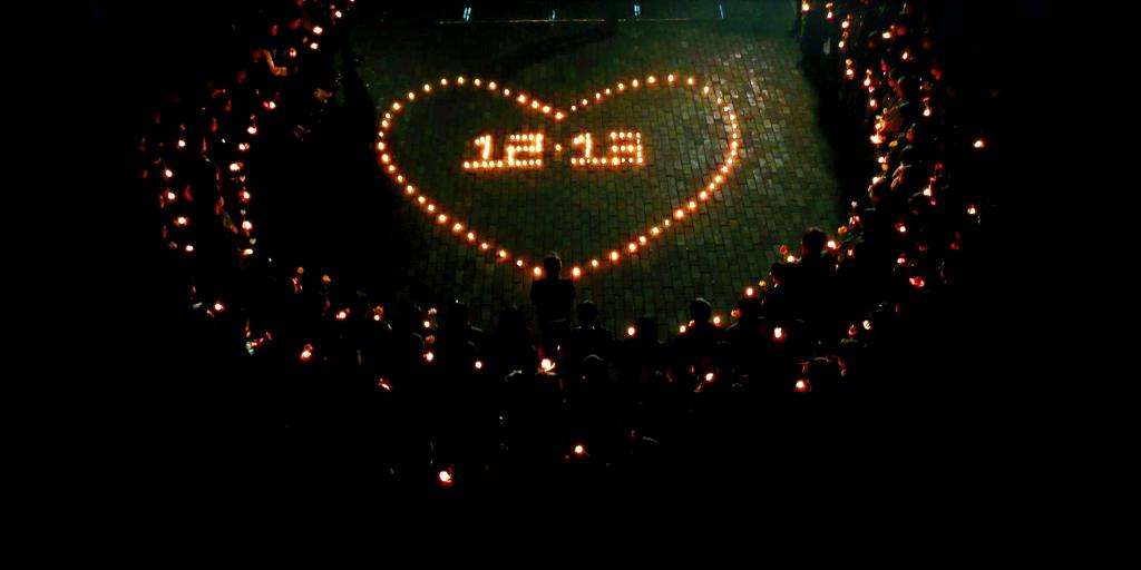 夜幕初降,同学们用蜡烛摆出了一个“心”的形状,里面则是“12•13”国家公祭日的时间,数百名同学手托红烛,低头默哀,为30万南京大屠杀死难者举行烛光祭活动。默哀毕,同学们向遇难同胞敬献鲜花,学生代表宣读了和平倡议书。随后,怀着压抑的心情,同学们在和平许愿墙写下自己对南京大屠杀死难者的哀思以及对世界和平的美好祈愿。每字每句,都发自肺腑,而悼念之思、历史之痛早已超出文字的表述,沉重的气氛久久萦绕在校园上空。面对着这一切,地球与环境学院2016级水文与水资源工程专业的杨毅鹏同学说:“南京大屠杀不仅仅是南京一个城市的悲痛,也是国家之痛、民族之痛,我们必须牢记历史,勿忘国耻,努力学习,奋发图强。”