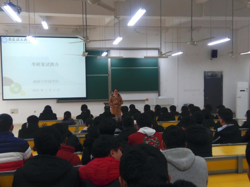 3月5日下午,地球与环境学院在明理104教室召开2019届研究生招生宣讲会。学院党委副书记金德主持会议,副院长吴荣新、各系主任、导师代表、毕业班辅导员和2019届考研毕业生等参加了会议。