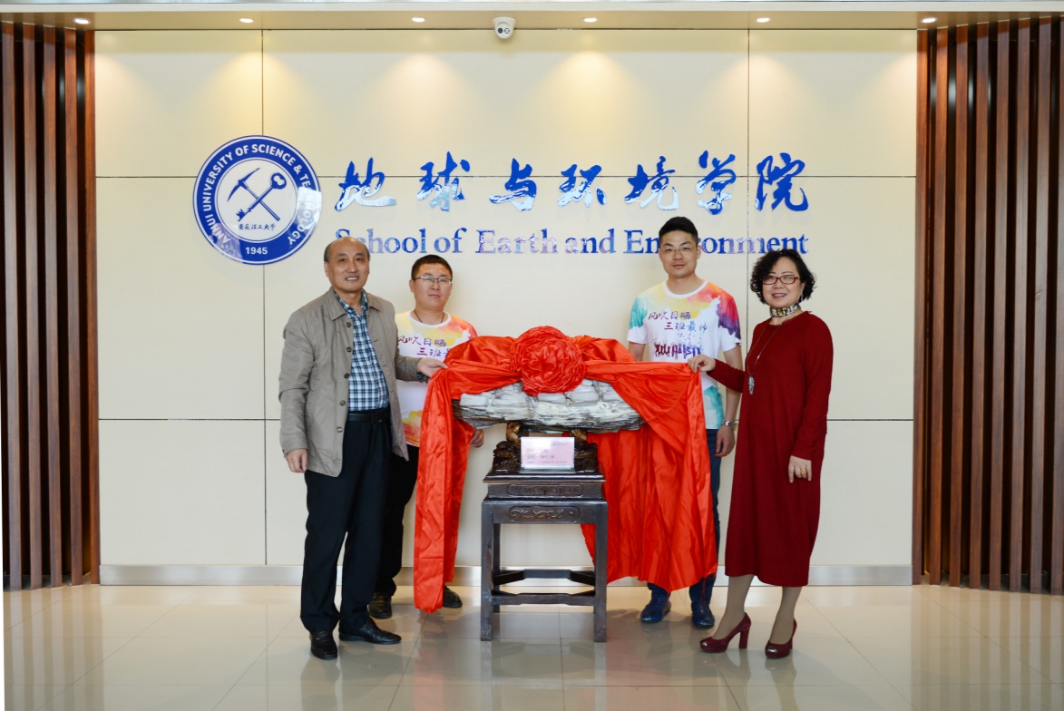座谈会结束后,校友们向学院捐赠了硅化木并合影留念。