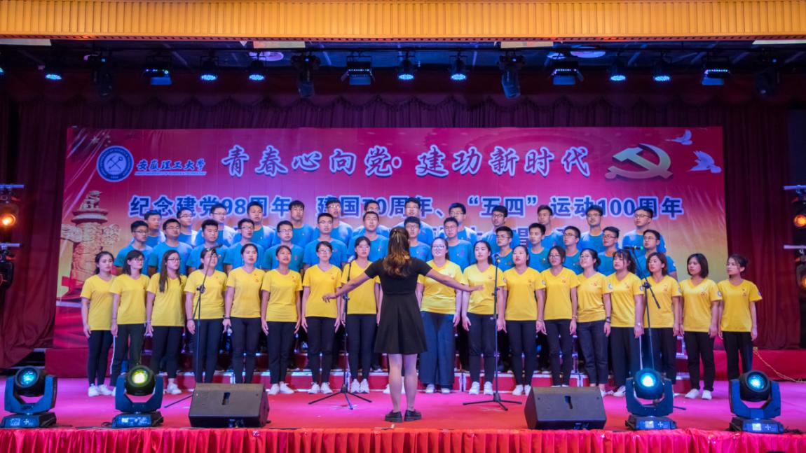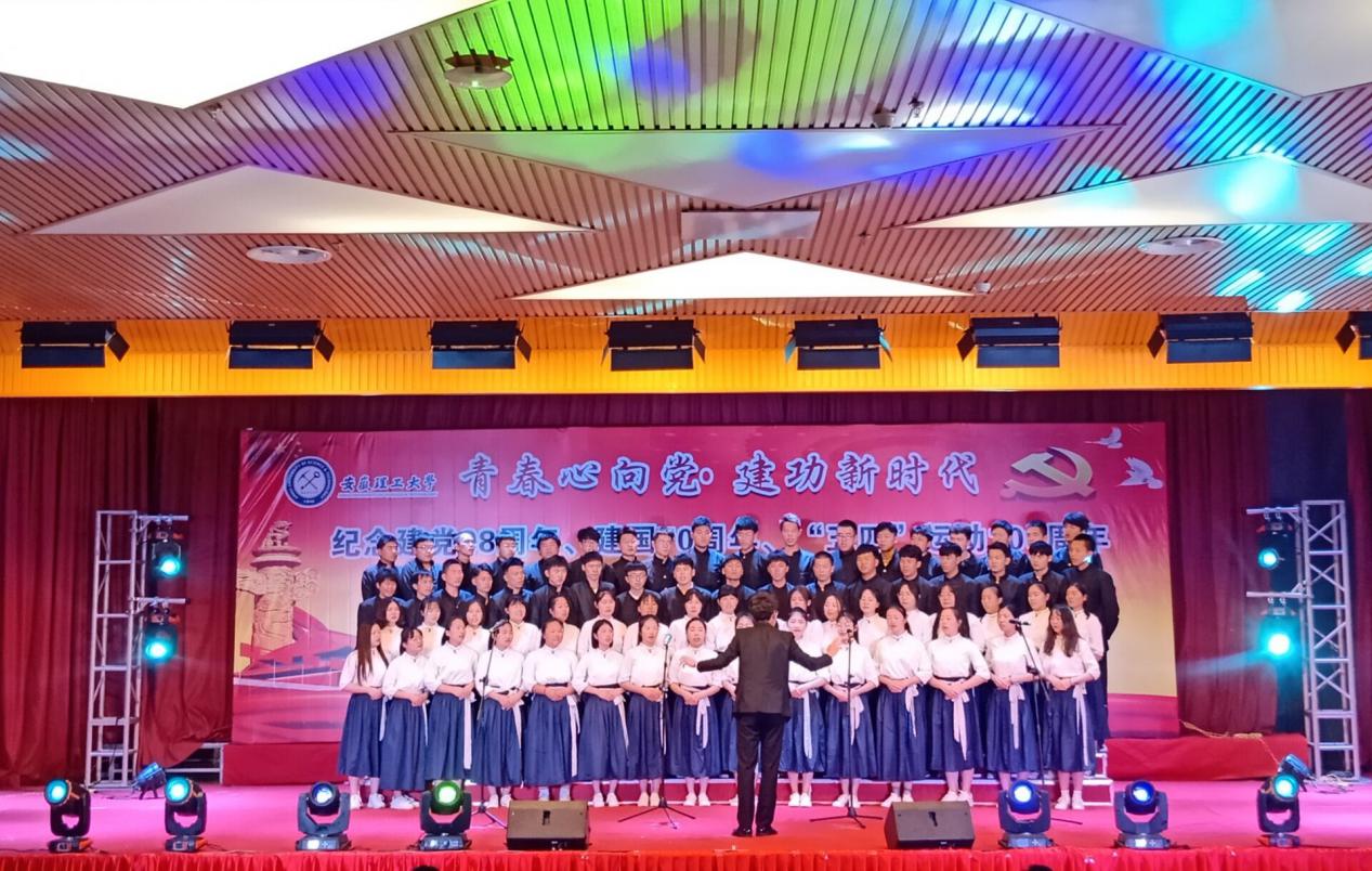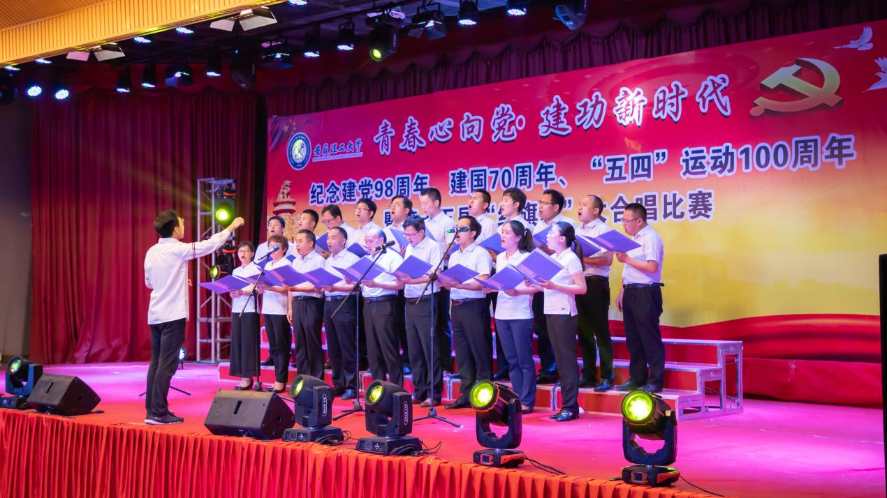 比赛在水文与水资源工程2018-1班和2017-1班联队合唱的《没有共产党就没有新中国》中拉开了帷幕,艰难坎坷的过去,让我们铭记苦难的曾经,光辉向上的今天,让我们斗志昂扬,彰显了中国共产党不断带领中国人民走向光明,走向复兴;环境工程2018-1班和环境工程2017-1班联队合唱的《大学无疆》展现了安理学子追求卓越、志存高远的伟大目标;红歌咏流传,历史勿相忘,我们歌唱亲爱的祖国,2个研究生党支部联队合唱的《歌唱祖国》,让我们深切地感受到了中华民族的优秀儿女不忘初心、自强不息、继续前进的精神;由地质工程和勘查技术工程演唱的《勘探队员之歌》唱出了地质工作者对祖国煤油气勘探建设毫无保留的满腔热情和自豪感;《保卫黄河》、《走向复兴》等歌曲铿锵有力,字正腔圆,将比赛推向高潮,学生用歌声发自肺腑的表达了对祖国的热爱之情,祝福祖国走向繁荣富强。教师合唱队演唱的《走进新时代》整首歌曲旋律充满正气,充满了爱国主义精神,亲切深情的歌声表达出对祖国的热爱、对新时代的豪情。