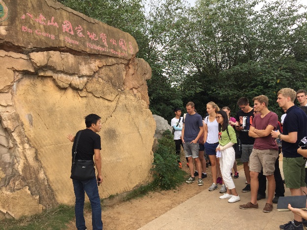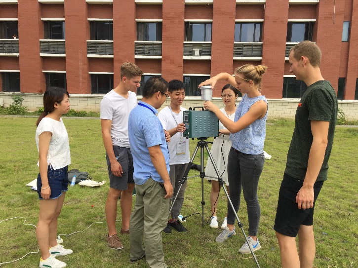2019年中德大学生“土地利用、环境问题与中国文化”科技文化交流活动自9月8日至9月14日,为期7天。来自我校和德国斯纳布吕克应用技术大学的40位本科生和研究生,通过参观考察、学术交流、社团活动和科研训练等环节,开展了丰富多彩的交流活动。活动期间,两校师生一同游览了安徽理工大学校园景观,参观了学校图书馆、国家重点实验室和地环学院的文化走廊、地学展厅、沙盘模型、实验室等,赴八公山国家地质公园、寿县楚文化博物馆和潘集东辰生态园,实地感受了淮南地层构造、生物地史和煤炭开采与生态修复工程,以及极具魅力的淮南子、豆腐等淮南本土文化。在学术交流和科研训练环节,地环学院6位教授和博士先后作了精彩的学术报告;来自两校的40位学生被分成8个小组,以地下管线探测、紫砂壶制作、弯道水沙分离、Darcy试验应用、岩石矿物标本鉴定、土壤蚯蚓形态鉴别、水环境监测分析和空气质量监测分析等为主题,在地环学院近20位老师的指导下,开展实验监测、数据处理分析、制作ppt、汇报展示等环节的基本科研能力训练。社团活动中,在校团委精心组织下,两校师生开展了中国书法、航模、乐器等丰富多彩的交流与互动。