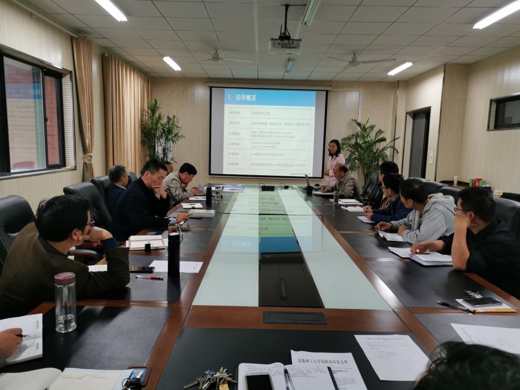 访学归国人员武慧君副教授就国外访学工作情况进行了详细汇报。受“安徽省高校优秀拔尖人才培育项目”资助,分别在加拿大麦吉尔大学(McGill University)和美国弗吉尼亚大学(University of Virginia)进行了为期一年的访学交流工作。期间,全程旁听了麦吉尔大学《全球土地与水资源》课程,并参与课程讨论与考核;参与项目研讨及课题例会,参加各类学术会议、学术讲座、学术沙龙等,撰写多篇高水平论文,出版学术专著一部。
