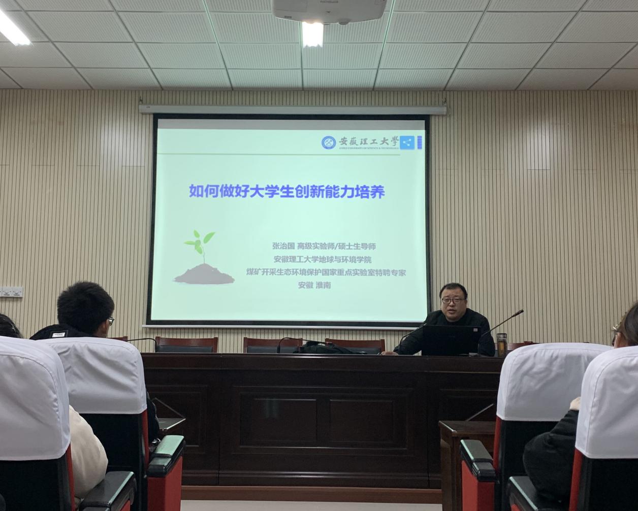 12月25日下午,地球与环境学院在静远楼406报告厅举办大学生创新思维培训讲座。讲座由学院高级实验师、硕士生导师张治国主讲,学院低年级创新骨干100余人参加了讲座。