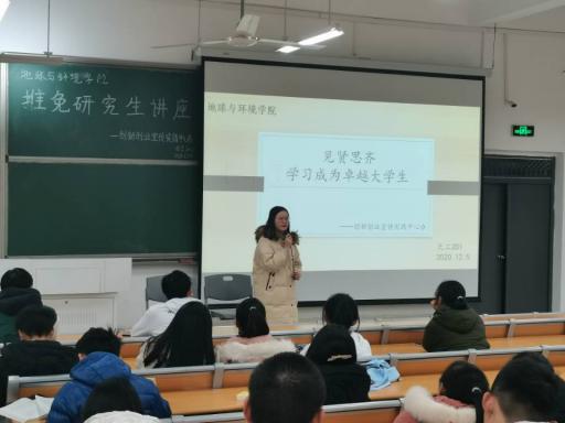 为坚持党建带团建,团建促党建,努力形成党团互促互进共同发展的良好局面,12月6日晚,地球与环境学院在天工201教室举办以“见贤思齐、党建带团建”为主题的学习交流活动。来自三个学生党支部的推免硕士研究生党员和学院90余名本科生参加了活动。