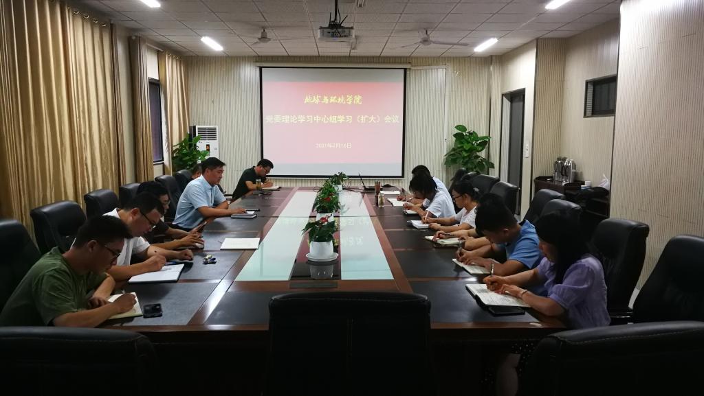 7月16日上午,地球与环境学院党委召开理论学习中心组学习(扩大)会议,对习近平总书记“七一”重要讲话精神和习近平总书记在参观“不忘初心、牢记使命”中国共产党历史展览时的重要讲话精神进行重点学习。学院党委副书记陈楠主持学习会议,院党委委员、领导班子成员、党支部书记、科级干部和全体辅导员参加学习。