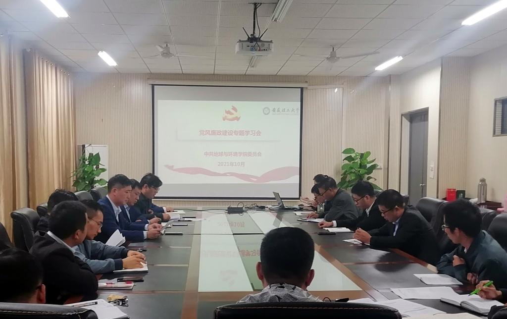 10月15日下午,地球与环境学院召开党委理论学习中心组学习(扩大)会议,开展党风廉政建设专题学习,院党委副书记(主持工作)陈楠主持会议,党委理论学习中心组全体成员、各党支部书记、委员、各系主任、副主任参加学习。