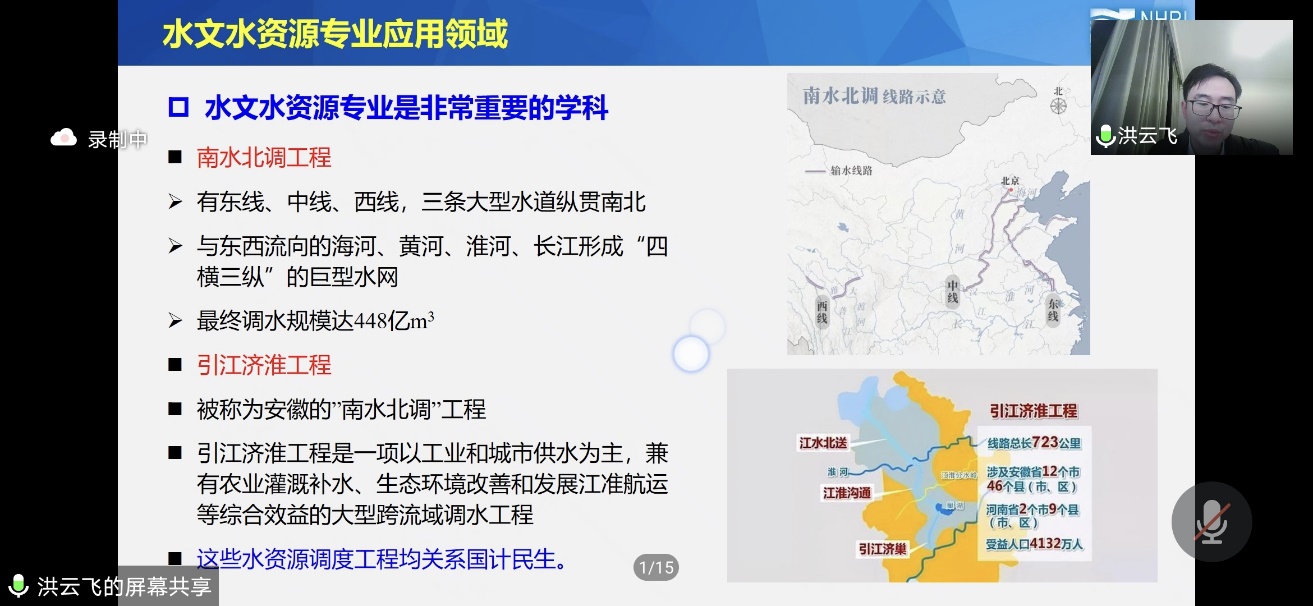 12月21日,地球与环境学院邀请水文与水资源工程专业首届校友、南京水利科学研究院工程师洪云飞为学院2021级、2020级及2019级水文与水资源工程专业学生做了题为“打好基础、学好本领、做好规划,争做一名优秀的水利人”的励志报告会,报告会由学院党委副书记贾伟主持,地球与环境学院水科学与工程系教师、本科生共计200余人通过腾讯会议在线聆听了报告会。
