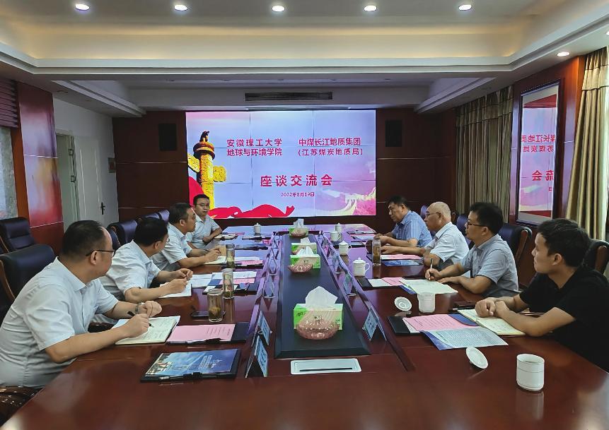 8月19日,校党委常委,副校长郑明东一行前往江苏煤炭地质局(中煤长江地质集团)调研,地球与环境学院院长刘启蒙,副院长鲁海峰等陪同参加座谈。