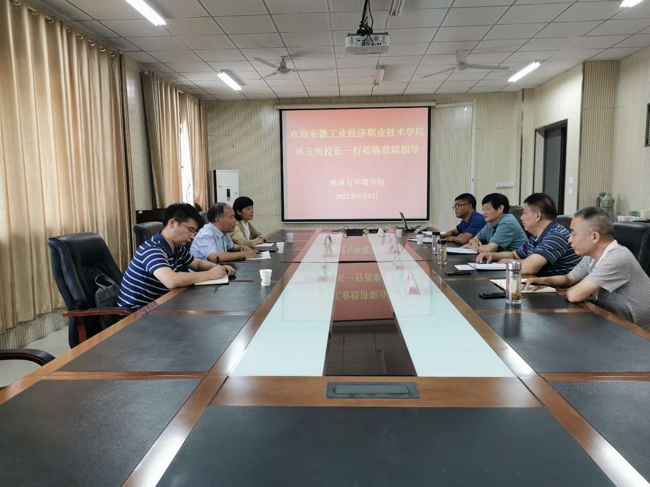 9月8日,安徽工业经济技术职业学院党委委员、合肥工业技术学校校长洪玉明一行来地球与环境学院调研交流。交流会由地球与环境学院党委副书记、院长刘启蒙主持,“大国工匠”朱恒银教授出席交流会。