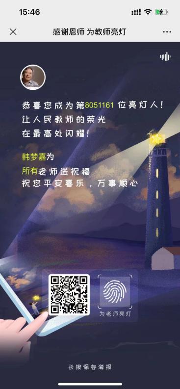 教师节前夕,学院在静远楼电子大屏滚动播放庆祝教师节系列图片、文字,营造祥和节日氛围,同时动员同学们线上参与为教师亮灯活动。
