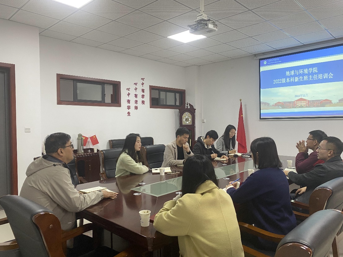 11月17日上午,地球与环境学院在静远楼B408会议室召开了2022级本科新生班主任培训会。2022级各班级班主任、辅导员参加了此次会议,院党委副书记贾伟主持会议。