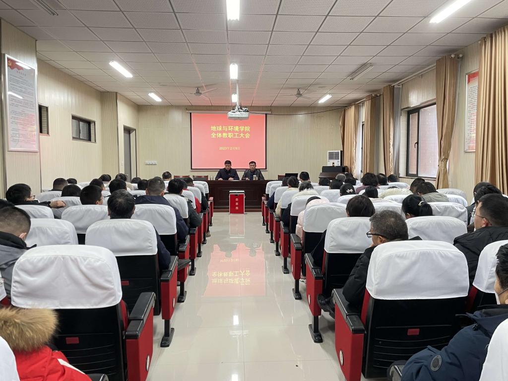 2月9日下午,地球与环境学院在B406会议室召开新学期全体教职工大会。会议由学院党委书记陈楠主持,全体教职工参加会议。