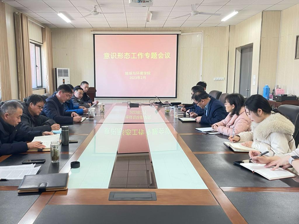 2月27日上午,地球与环境学院召开意识形态工作专题会,传达学校意识形态工作领导小组(扩大)会议精神,研讨推进学院意识形态工作。