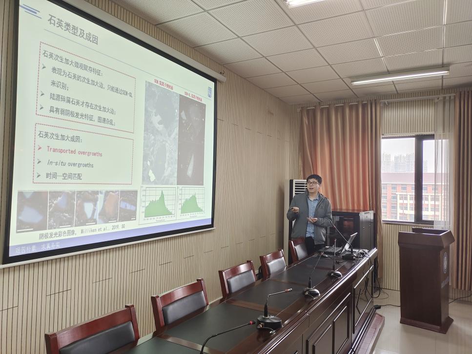 我校徐宏杰教授、中国地质大学(北京)能源学院陶树教授、唐淑玲副教授、郗兆栋博士分别做题为“低渗煤层甲烷吸附与CO2驱替特征-NMR”“准东白家海凸起深部煤岩气富集规律”、“鄂东大宁-吉县区块深部煤层气原位含气量预测与评价”和“海相页岩石英成因及其对储层品质的影响机制”的学术报告,介绍了非常规能源领域近年来的科研成果。期间,他们还耐心解答了同学们的疑问,并鼓励广大师生勇于在非常规天然气领域开拓创新。