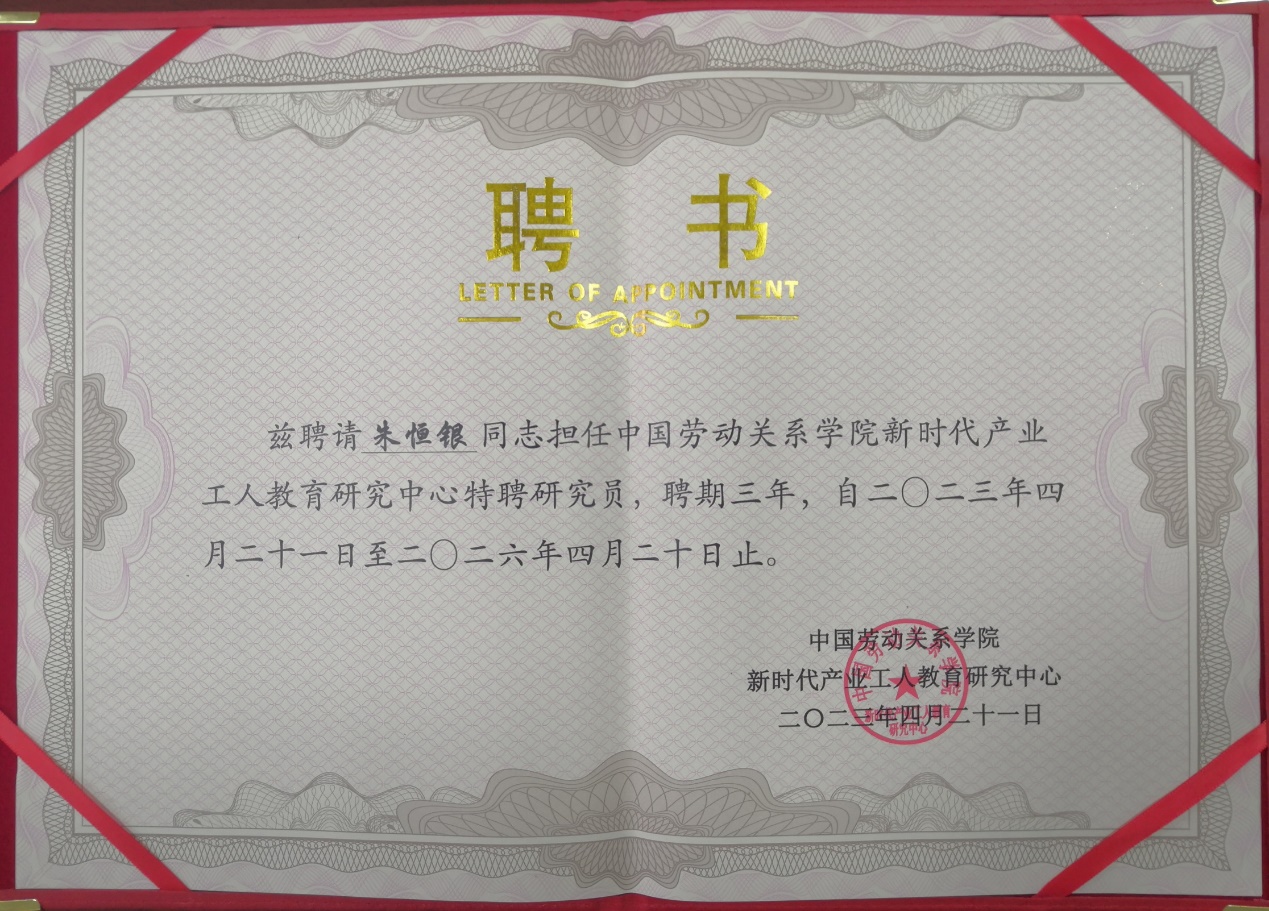 会议期间,在黄河入海口举行《劳模工匠东营行黄河入海口宣言》宣誓仪式,参会代表立下“劳动筑梦、技能报国”的铿锵誓言。中国劳动关系学院新时代产业工人教育研究中心特聘研究员聘任仪式暨2023年第一次工作会议同期举行,朱恒银教授受聘为特聘研究员。
