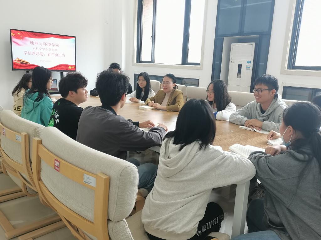 为深入推进学习贯彻习近平新时代中国特色社会主义思想主题教育,5月4日,地球与环境学院水科学学生党支部依托学院“一站式”社区开展“学悟新思想,青年勇担当”主题学习活动,水科学学生党支部书记魏丹丹、学生党员等30余人参加学习会。