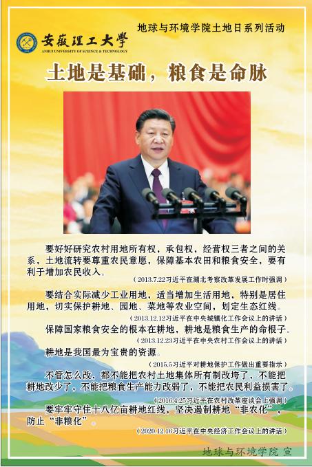 6月25日是全国第33个土地日,为深入学习宣传贯彻习近平新时代中国特色社会主义思想,引导全社会树立节约用地、保护耕地的意识,6月21日-25日地球与环境学院组织开展以“节约土地资源,严守耕地红线”为主题的土地日系列活动。