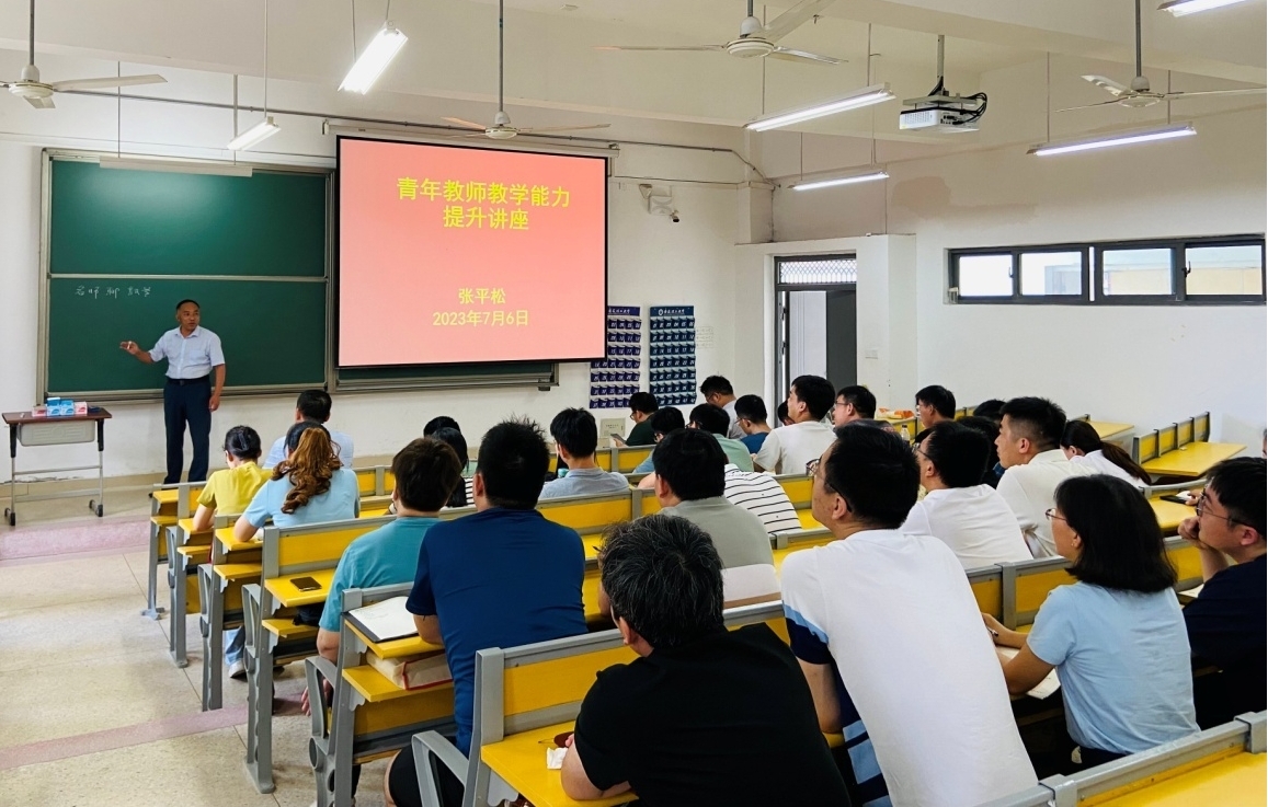张平松从讲情怀的角度,以热爱、投入、奉献、责任、自信、收获为关键词,深刻诠释作为一名教师应该具备的基本素质;从讲方法的角度,探讨了教学过程和教学效果的关系,强调教学准备应基于对学生情况的充分了解,同时要加强课堂氛围的调节,注重教学全过程及授课细节的把控;从讲研究的角度,分享了教学研究、学生思想研究、科学研究的意义和路径,明确指出了做好研究在教学中的突出重要性。