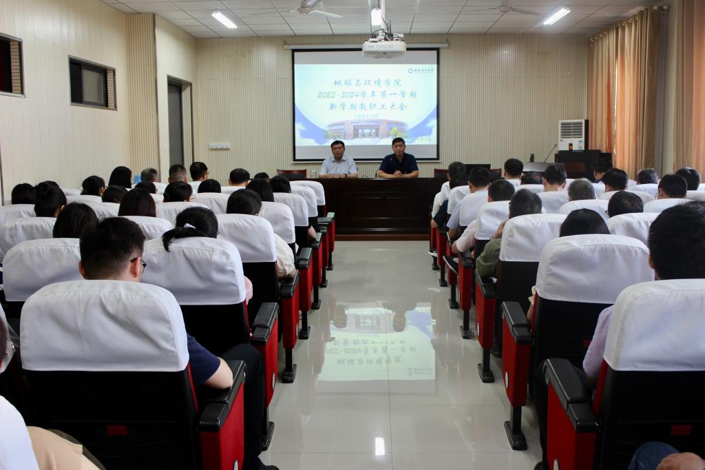 9月8日下午,地球与环境学院在静远楼B406会议室召开全体教职工大会,总结暑期工作,部署新学期重点工作。学院党委书记陈楠主持会议,学院领导班子成员,全体教职工参加会议。