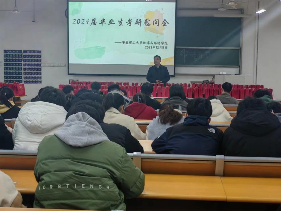 为深植“三有”办学理念,从学生实际需要出发,切实帮助考研学生缓解备考压力,坚定考研信心,12月5日,地环学院在天工105开展考研学子慰问活动,学院领导班子成员、毕业班辅导员、2024届考研学生代表参加活动。会议由毕业班辅导员魏丹丹主持。