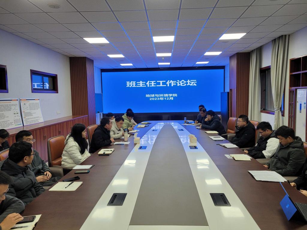 2023年12月12日,地球与环境学院在静远楼B304召开了班主任工作论坛,论坛由学院党委副书记贾伟主持,2022级、2023级全体班主任和辅导员参加会议。