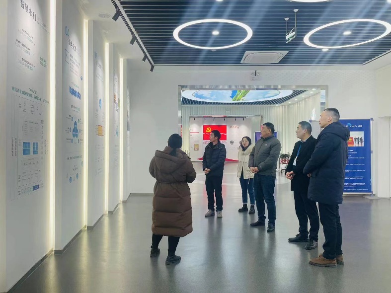刘启蒙一行首先参观了企业展厅,深入了解中水三立公司深耕智慧水利行业,在水利信息化、智能调度运行管理、智慧水环境,以及智能传感器、一体化监测站等硬件开发方面取得的优良业绩。