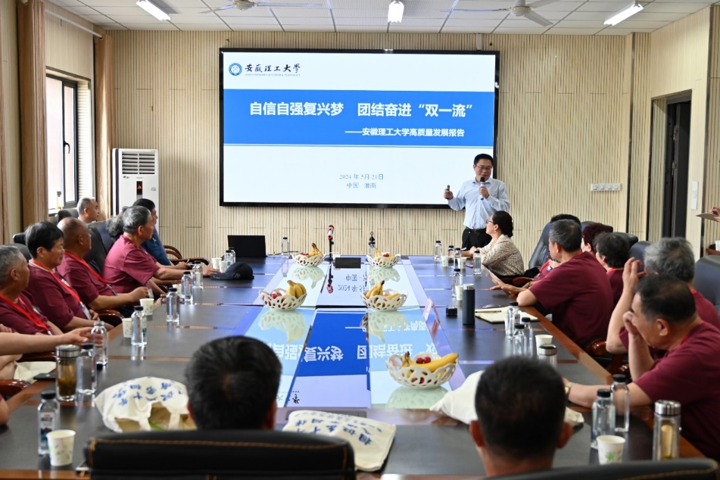 余玉刚代表学校对校友返校表示热烈欢迎,他详细介绍了学校近年来的发展情况和优异成绩,他表示安徽理工大学正朝着“双一流”创建再出发的宏伟目标奋勇迈进,安理师生将传承历史,脚踏实地、接续奋斗。