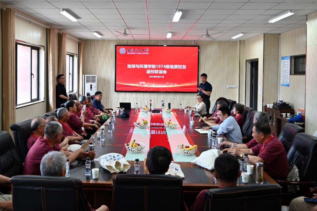 光阴似箭,岁月如歌,相识五十载再聚首。5月21日,地球与环境学院地质工程专业74级40余位校友及家属从全国各地返回母校,共话校友情谊。校党委副书记、常务副校长余玉刚,党政办、合作发展处,地球与环境学院等相关单位负责人参加座谈会。座谈会由学院党委书记陈楠主持。