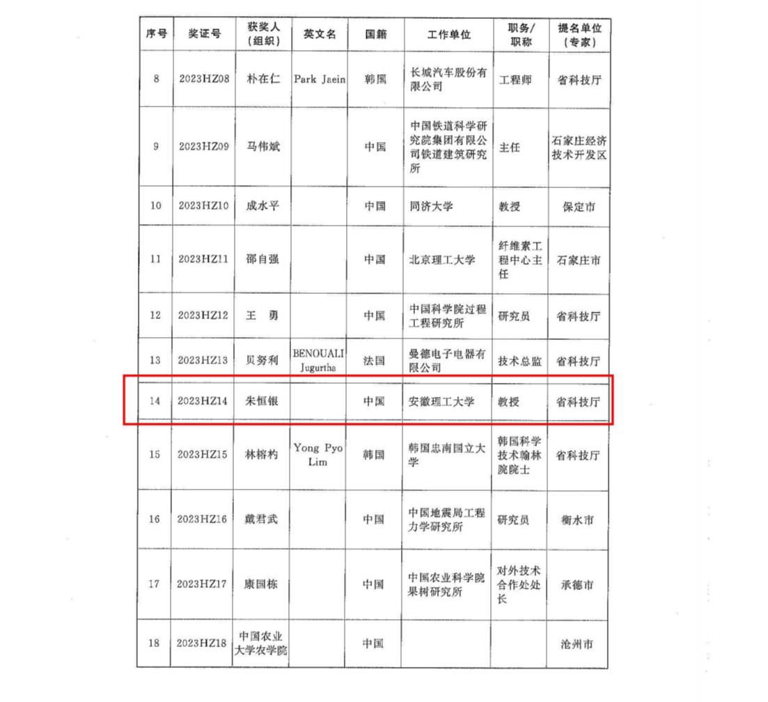 近日,河北省人民政府发文公布2023年度河北省科学技术奖,“大国工匠”朱恒银教授荣获河北省科学技术合作奖。