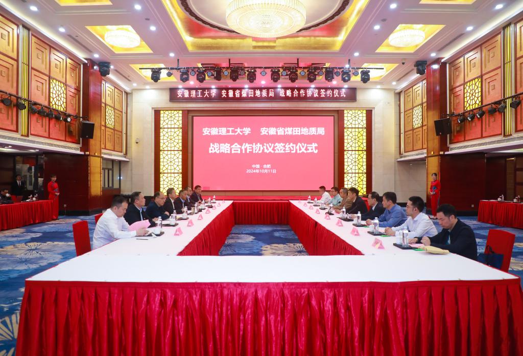10月11日下午,学校与安徽省煤田地质局在合肥签署战略合作协议。校党委副书记、校长袁亮院士,安徽省煤田地质局党委书记、局长李军出席签约仪式并致辞。校党委常委、副校长张平松参加活动。安徽省煤田地质局党委委员、副局长张新程主持签约仪式。