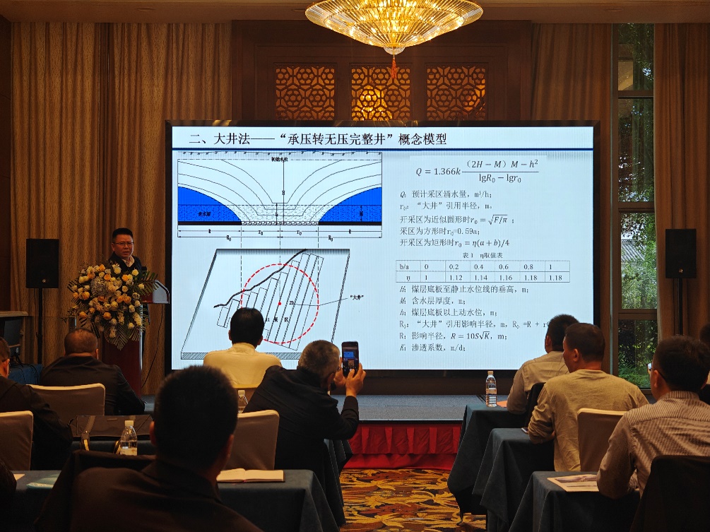 刘启蒙院长应邀主持了24日大会第二阶段的主会场报告。学院吕玉广教授在矿井地质与水文地质分论坛上作了“生产矿井涌水量预计方法与问题探讨”的报告,围绕矿井涌水量预计方法、“大井法”应用效果、“大井法”应用效果误差大的原因、矿井涌水量与排水量关系等方面展开,为生产矿井涌水量计算提供了重要指导。报告聚焦煤炭行业发展痛点,内容深入浅出,理论结合实际,引起与会代表的热烈反响和高度赞赏。